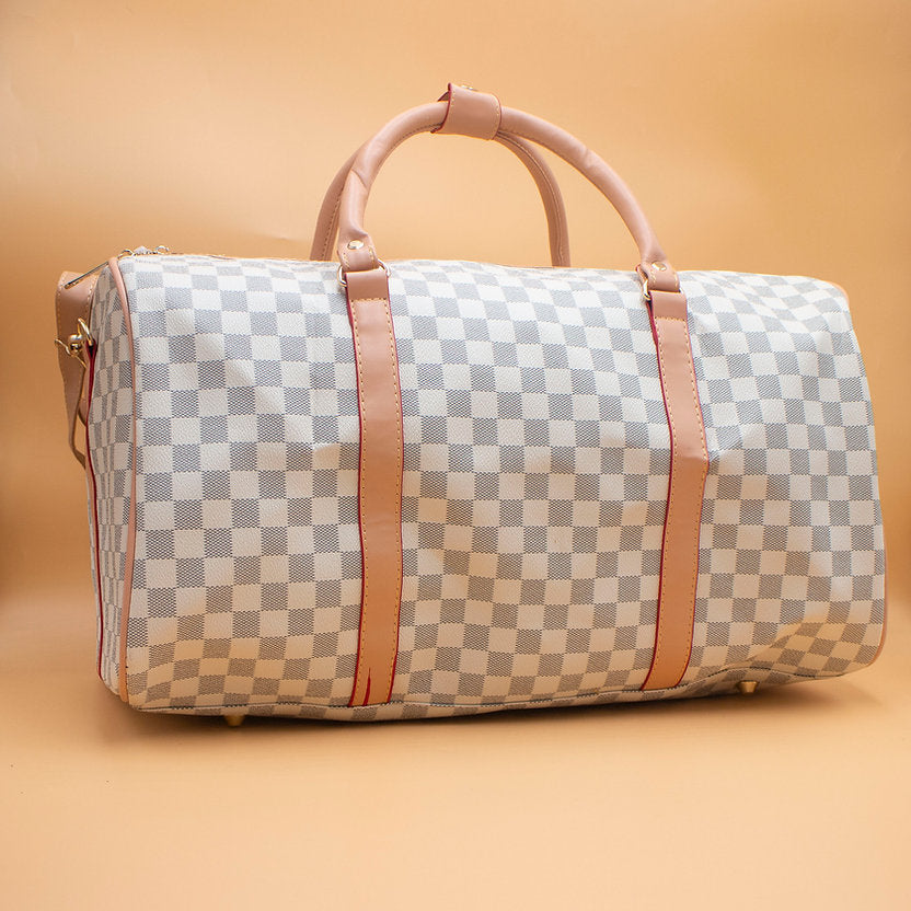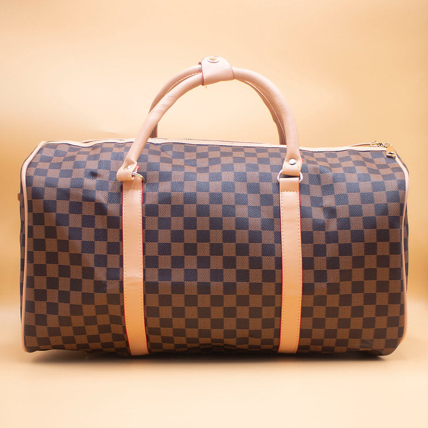 Travel in style with the SF12 Duffle Bag, designed to combine luxury, functionality, and durability. Crafted with a premium checkered pattern exterior and soft leather handles, this bag adds a touch of elegance to all your journeys.